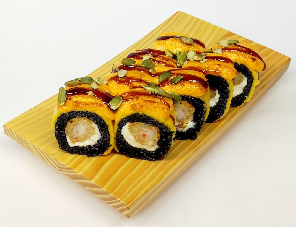 Сыр тостерный,сыр филадельфия,креветка темпура,сайс фирменный,унаги,тыквенные семечки